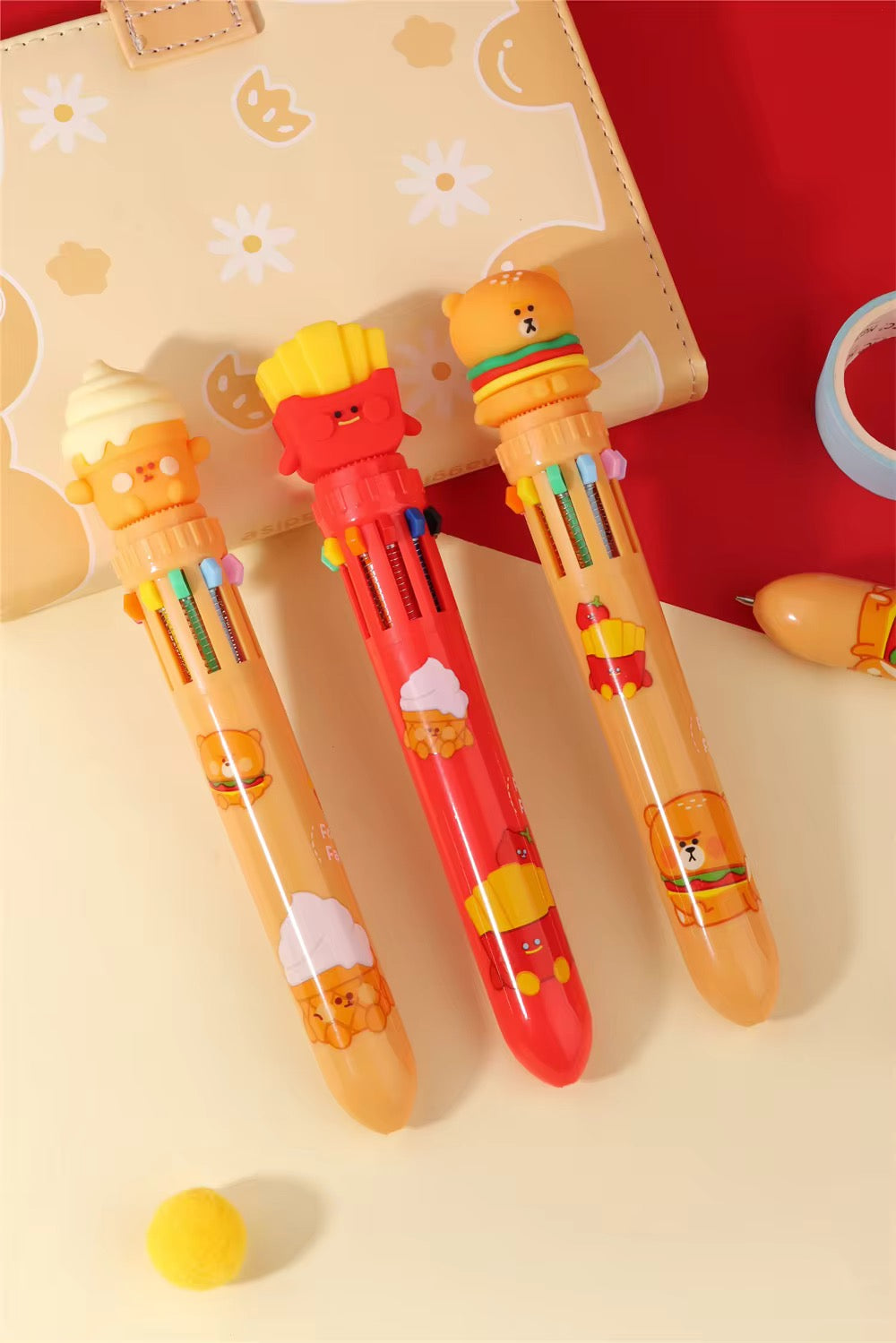 Kiwoo Fast Food Multi-Colour Ball Pen 🍔🍟🐻✨