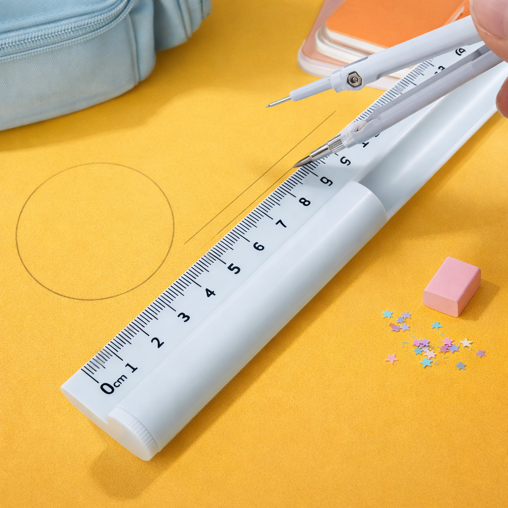📏 Includes clear ruler, compass, and essential tools for everyday school use.